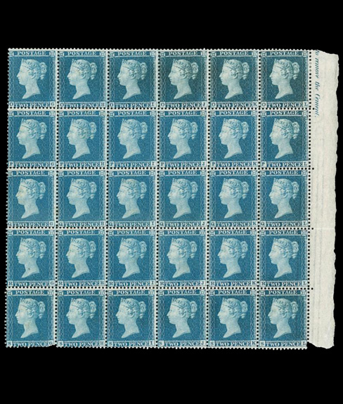 General characteristics Plate history: Originally used for the Penny Black (SG2), Plate 5 was subsequently used to print the 1d red-brown (SG7) and the 2d blue (SG34). It underwent at least five different states due to wear and repairs.