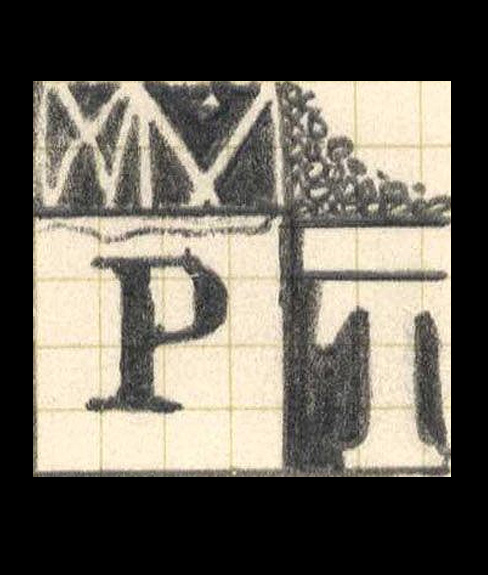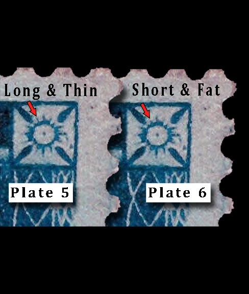 Thinned corner letters: The corner letters of some stamps from Plate 5, particularly in its later states, appear thinned or weak. This is a key diagnostic feature, especially on stamps printed after the plate was repaired.