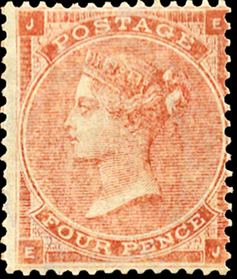 1862 4d Pale red, with corner hair lines