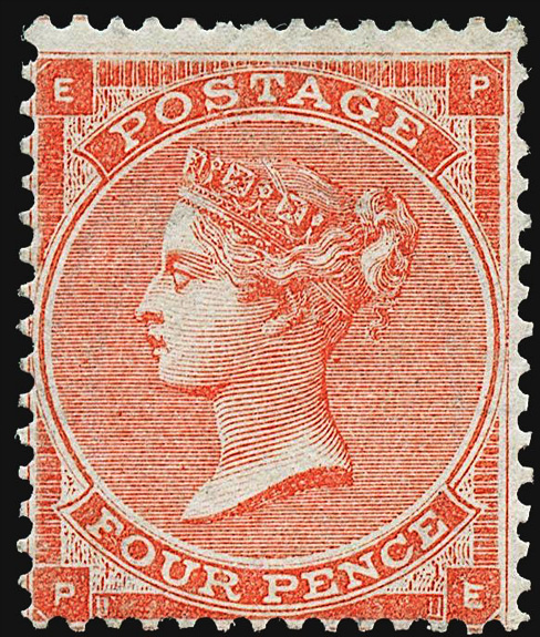 1862 4d Bright red, with corner hair lines